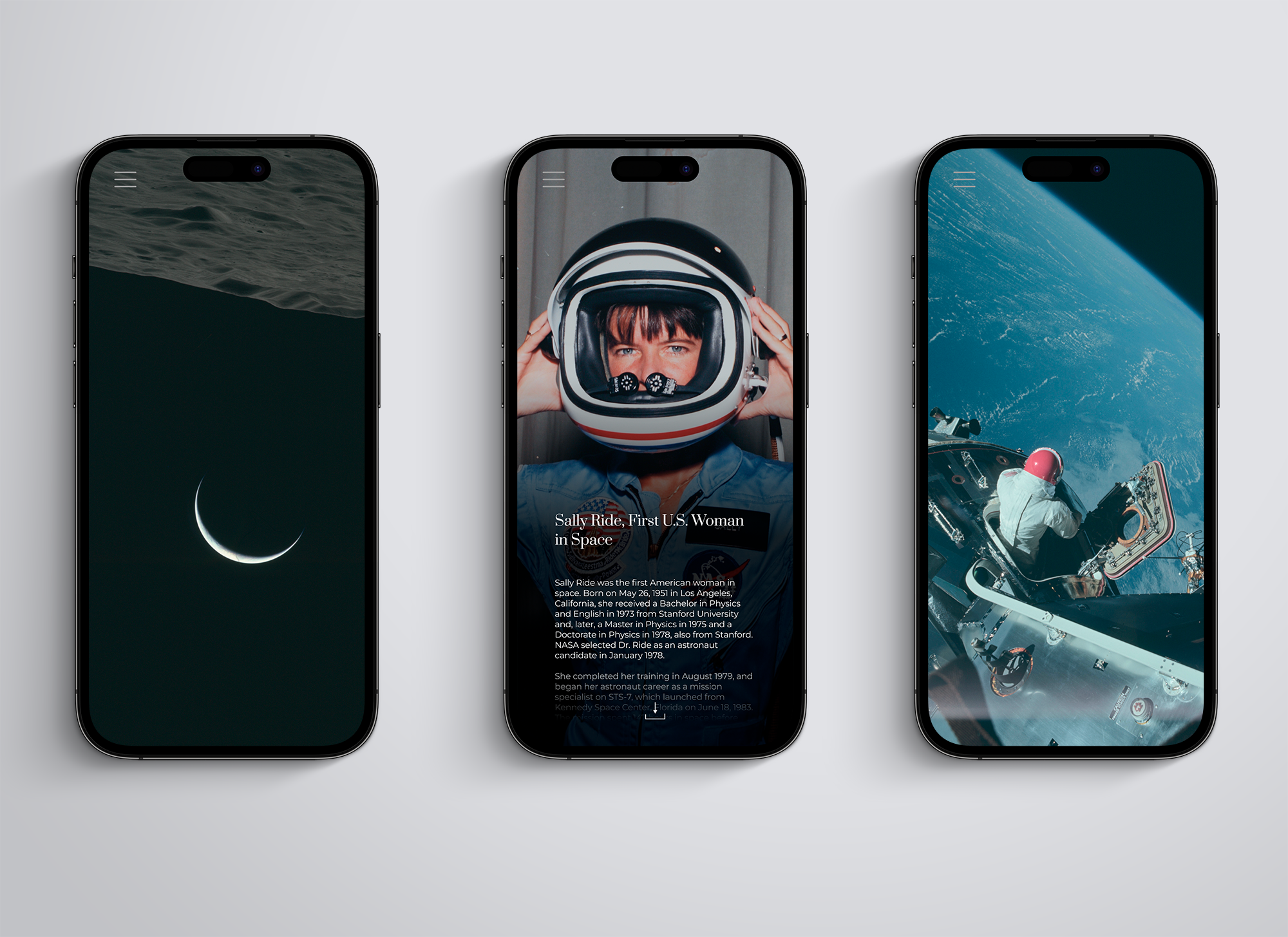 “Ether” is a concept for an app combining archival stories from the physics and the space industry with stunning photos.
