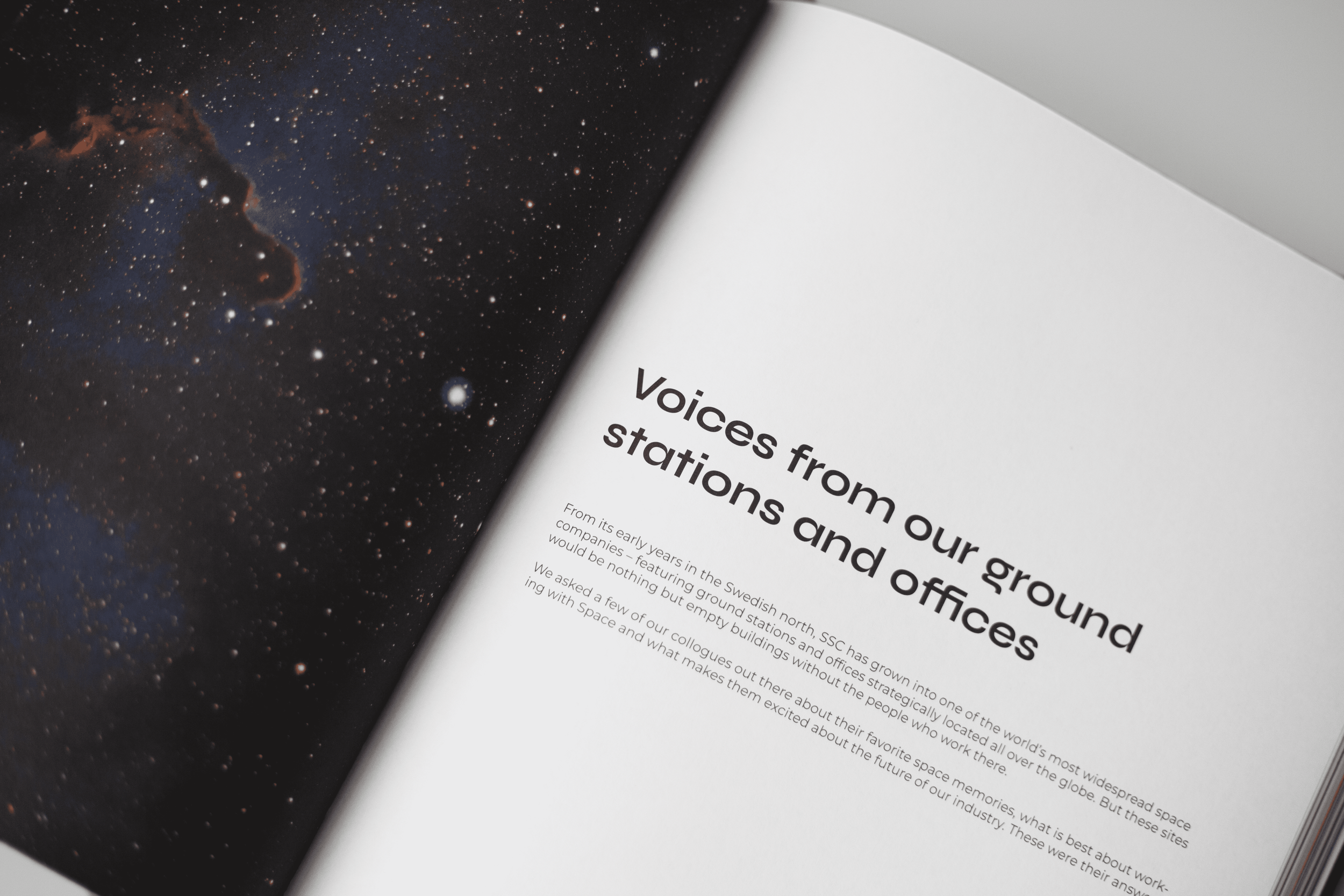 During 2022, Swedish Space Corporation celebrated fifty years of being in business. We wanted to celebrate and commemorate this year by creating a 200 pages long coffee table book, with the main purpose of being a token of pride to the employees- as well as an informational product for customers. I was entrusted with the honor of Art Directing the entire project.